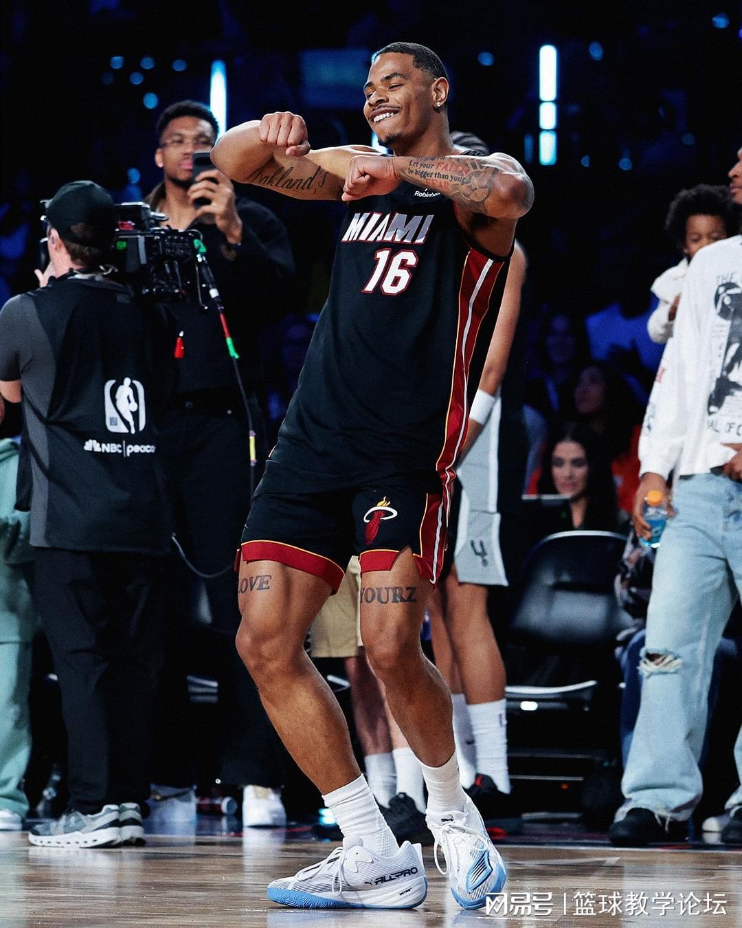 热火小将凯沙德-约翰逊飞跃说唱歌手,手摸后脑勺扣篮,平均分47.4分。最后出场的是湖人中锋海斯,罚球线内一大步扣篮,平均分44.6分四人最低。理查德森和海斯的扣篮一言难尽,没有难度也没有创意,感觉像临时准备的一样。