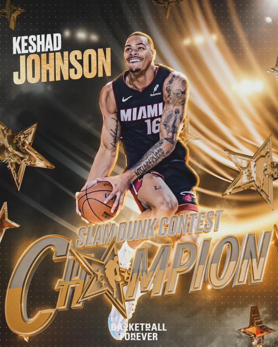 凯沙德-约翰逊很兴奋,每次扣成之后都要尬舞一番,但现场的观众兴致不高。决赛第二扣,约翰逊选择了海斯同款的罚球线内一大步扣篮,这次评委给了47.8分。卡布只需要拿47.4分就能夺冠,结果他多次扣飞,最后只拿到43分。