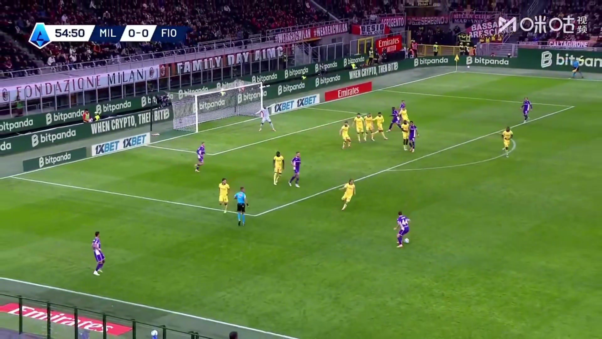 佛罗伦萨1-0领先米兰禁区内乱战戈森斯将球挡进球门